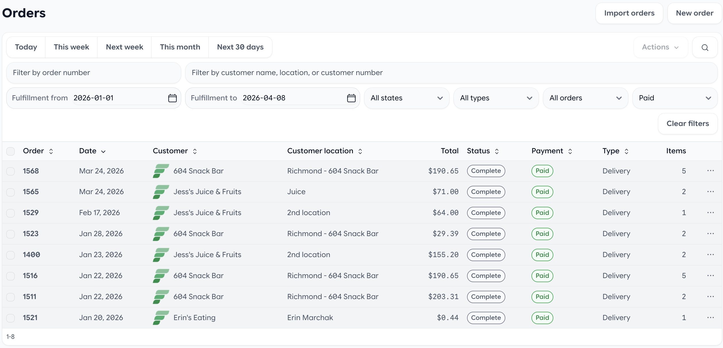 - Freshline reads the customer's net terms (for example Net 7, Net 14, Net 30)