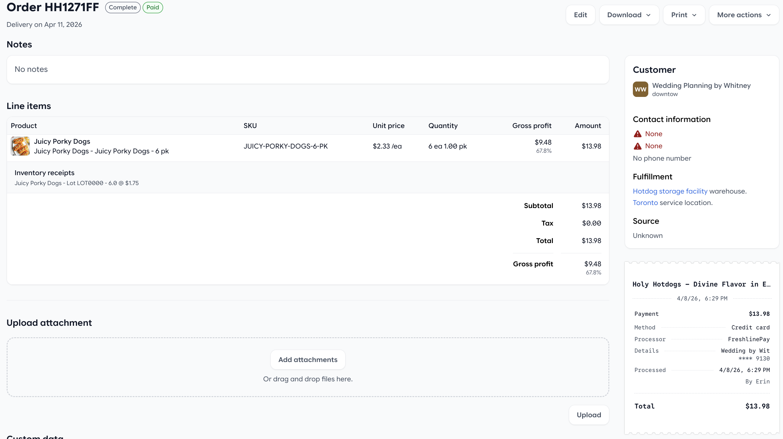 - Freshline automatically charges the saved payment method